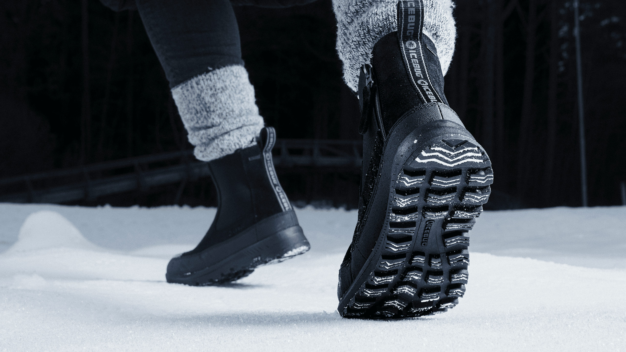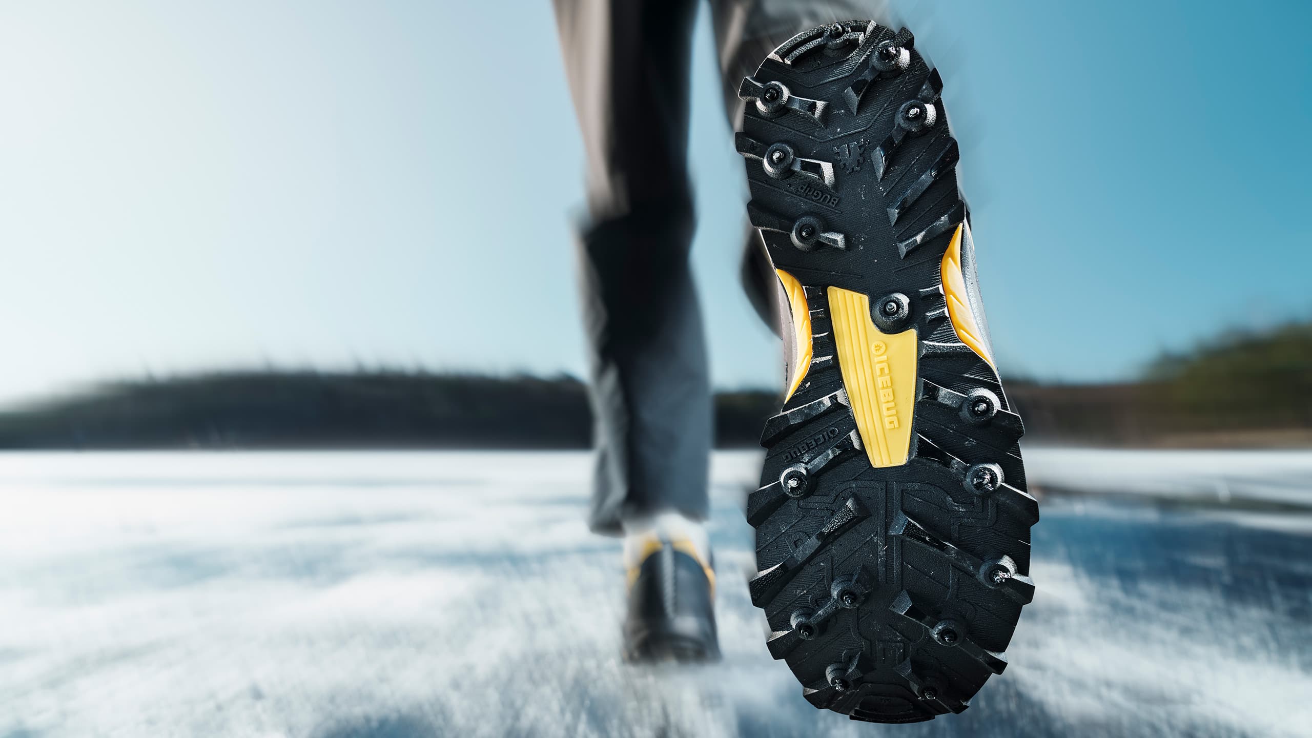 Nordic Traction is built for Nordic winters. Developed by Icebug over many years, this rubber compound offers excellent grip on wet, snowy, and mixed winter surfaces. However, for icy conditions, we recommend a shoe with Icebug’s BUGrip steel studs for secure footing.